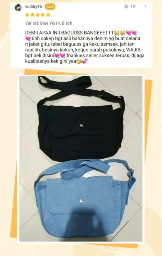 Tas Selempang Postman Unisex Pria Wanita Jeans Vintage.